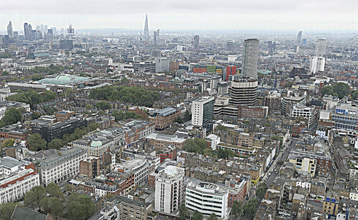Fotografın çekildiği nokta BT Tower. Bir tarafta gökdelenlerin sıralandığı Canary Wharf bölgesi, The Shard ve hemen yakınlarındaki London Eye gözükürken BT tower’ın kuzeye bakan tarafından da az ileride Regent’s Park gözükmekte. Dikkatli bakılınca Londra’nın pek çok yerini net olarak görebiliyorsunuz.